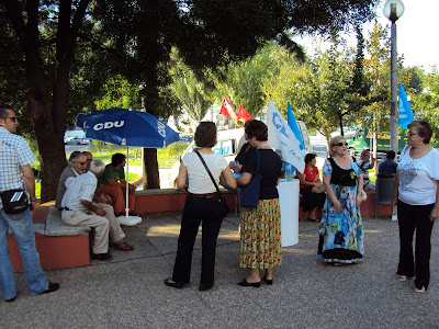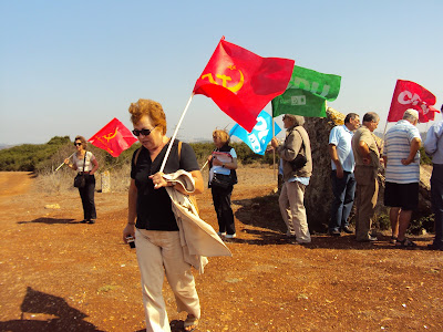 Ao verem que do lado contrário alguns de nós apontavam as máquinas fotográficas e reconhecendo as bandeiras da CDU hesitaram, tendo ao que nos apercebemos entrado em contacto por telemóvel, com alguém e foram-se embora.
